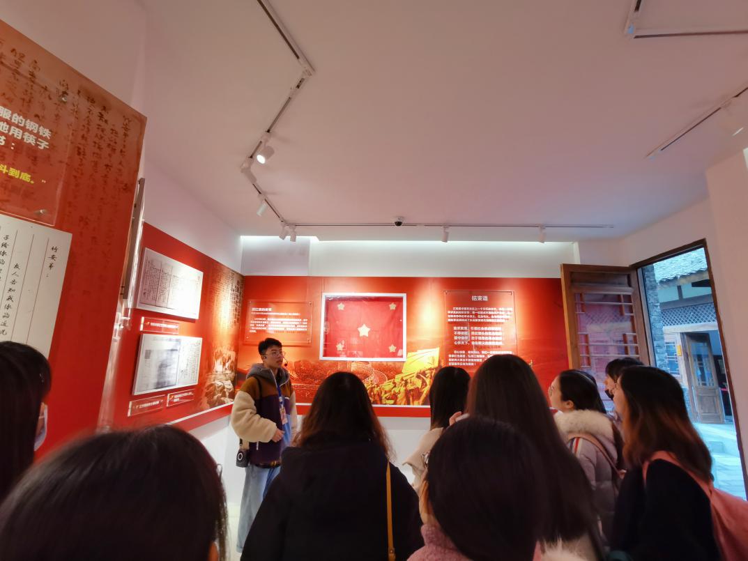 上午10点,全体同志抵达目的地——江姐纪念馆。该馆由江姐事迹主展厅、江姐宿舍场景复原展厅、太阳成集团tyc151cc英烈事迹展厅和一个小型院落组成。大家在讲解员的带领下依次入馆参观。