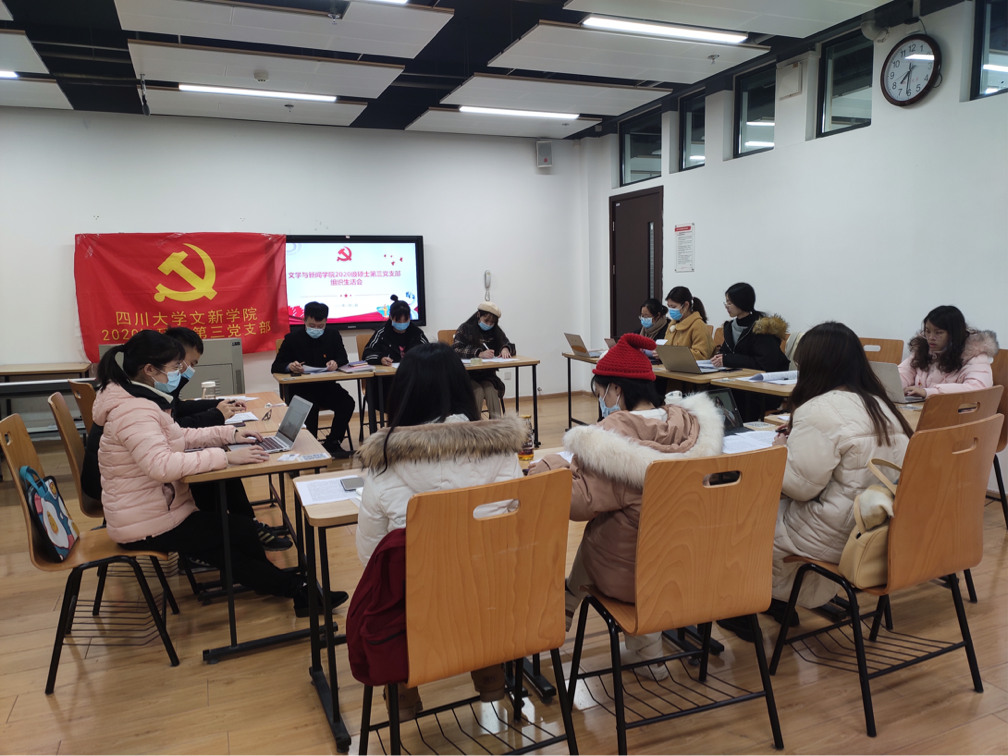 2020年12月22日,公司2020级硕士第三党支部于文科楼一区116教室召开2020年度组织生活会。会前,全体党员集体学习了《关于巩固深化“不忘初心、牢记使命”主题教育成果的意见》和《新形势下党内政治生活的若干准则》(以下简称《意见》和《准则》),党支部书记杨盛果同志作了工作报告。会上,全体党员对2020年度的党支部工作和班子作风进行了评测,并开展了批评和自我批评,进行了民主评议。