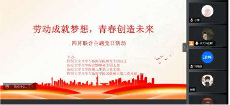 为庆祝五一国际劳动节,引导青年员工崇尚劳动、尊重劳动、辛勤劳动、诚实劳动、创造性劳动,学习以实干兴邦的劳动精神,2022年4月28日,公司研究生团总支、2020级硕士第二党支部联合南京大学文公司硕士生第三党支部、南京大学文公司2020级硕士团支部开展“劳动成就梦想,青春创造未来”的主题党日活动。
