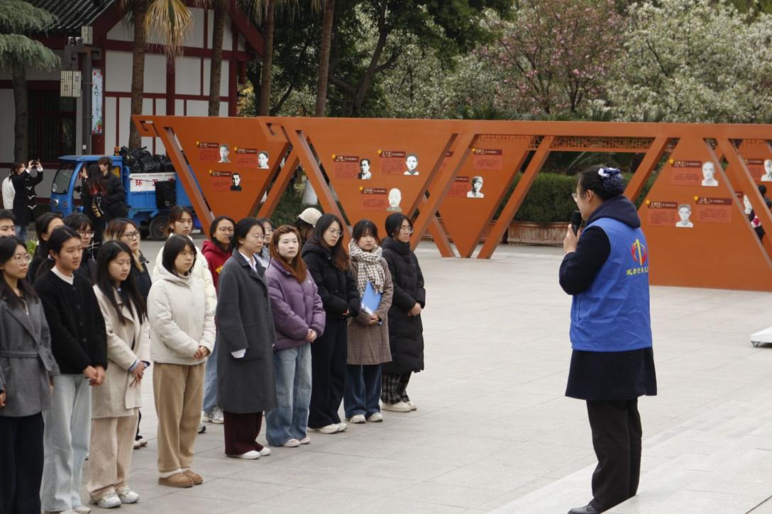 活动伊始,支部成员在烈士雕像前认真聆听了十二桥的红色往事。1949年12月7日成都解放前夕,国民党反动派将其逮捕囚禁的30多位共产党员、民主党派成员、革命青年和爱国志士残忍杀害,在成都制造了十二桥惨案。鲜血洒在川西沃土,青年在黎明破晓前殉难。