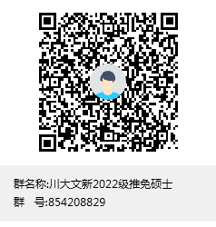 申请人请加入“川大文新2022级推免硕士”QQ群(群号:854208829, 也可扫描以下二维码进入),该群需实名认证,认证方式是“姓名+所在公司”。