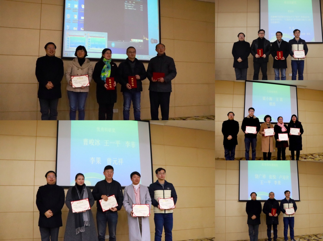 古立峰书记代表公司宣布了2018年度优秀教学奖、优秀科研奖、行政管理奖、优秀辅导员奖、特别贡献奖、优秀青年教师奖等先进个人奖项获奖名单。李怡经理为获奖教师、行政人员颁奖。