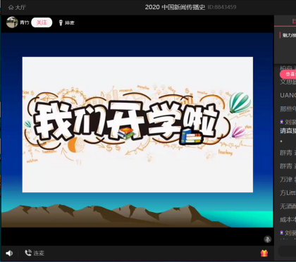 张朝富老师的《中国古代文学2》则采用qq直播间的形式,交流方式除去排麦和连麦之外,还可以通过旁边的聊天区进行互动。张老师为了避免直播课程出现杂音,专门来到江安校区文科楼办公室直播。伴着江安早晨充满生机的鸟叫声,互联网直播间将天南海北的川大学子连接起来。张老师看到大家整整齐齐在直播间报道,不禁发出感叹:“进来便意味着平安。”
