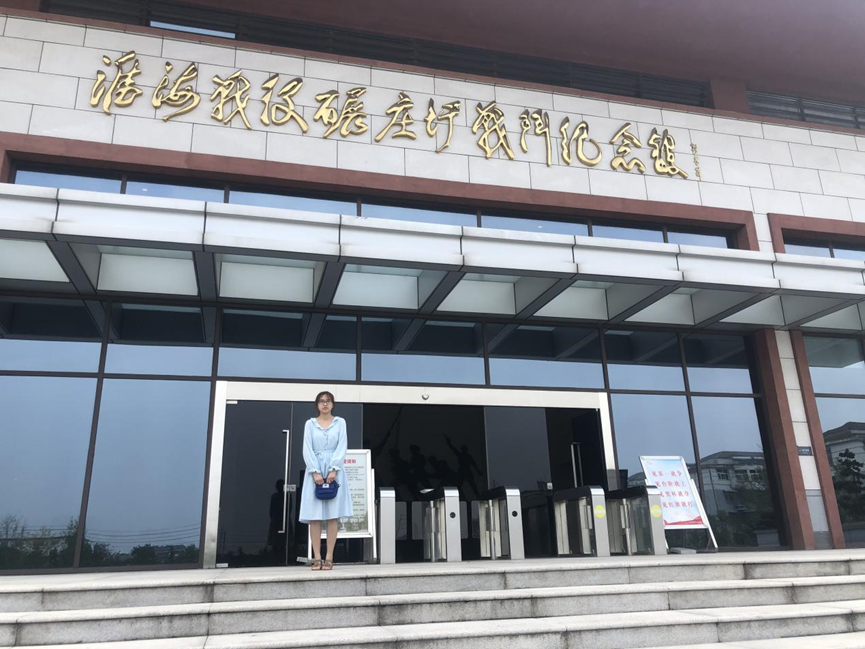 孔雅萱在淮海战役碾庄圩战斗纪念馆前留影