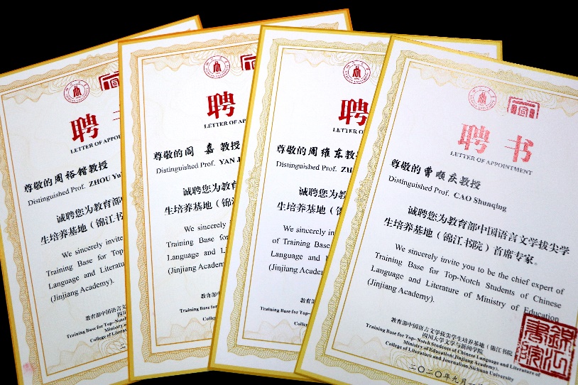 中国语言文学拔尖员工培养基地部分导师聘书