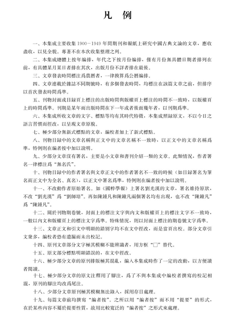 本文整理自《晚清民国中国古典文论研究文献集成》“前言”“凡例”“目录”“后记”。