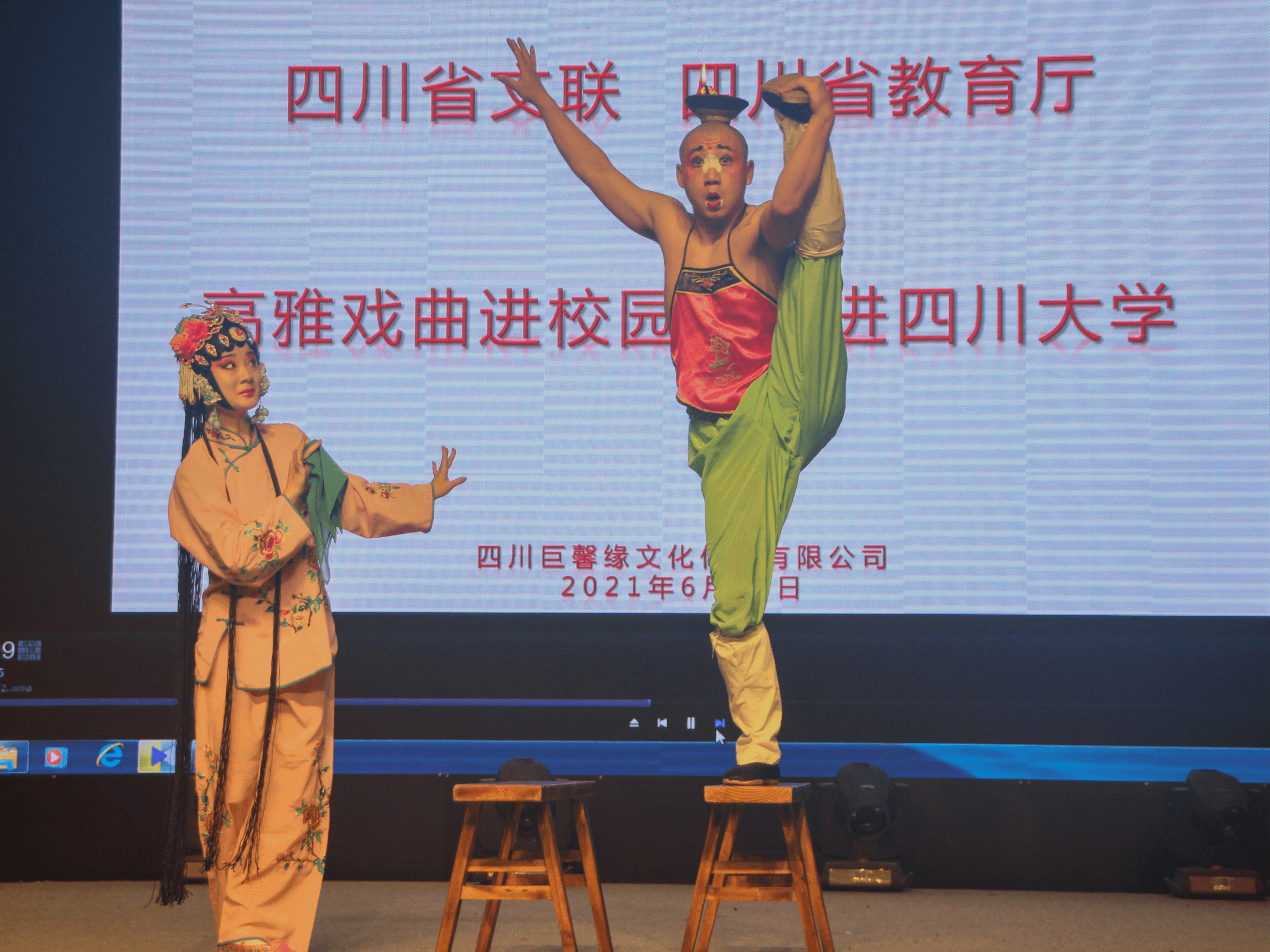 2021年6月15日下午2:30,国家级非物质文化遗产川剧代表性传承人、中国戏剧“梅花奖”获得者、国家一级演员、四川省川剧理论研究会副会长、四川艺术职业公司二级教授肖德美应邀在江安校区文科楼演播厅举行《传承川剧文化,庆祝建党百年——肖德美川剧艺术传承传播暨实践成果展演》太阳成集团tyc151cc专场,公司丁淑梅教授主持。作为国家级非物质文化遗产川剧代表性传承人,肖德美教授不仅数次赴境外演出,而且以讲座+示范+展演的传播形式在多所大中小学、基层社区举办一百余场讲座展演,让戏曲走近年轻人的身边。