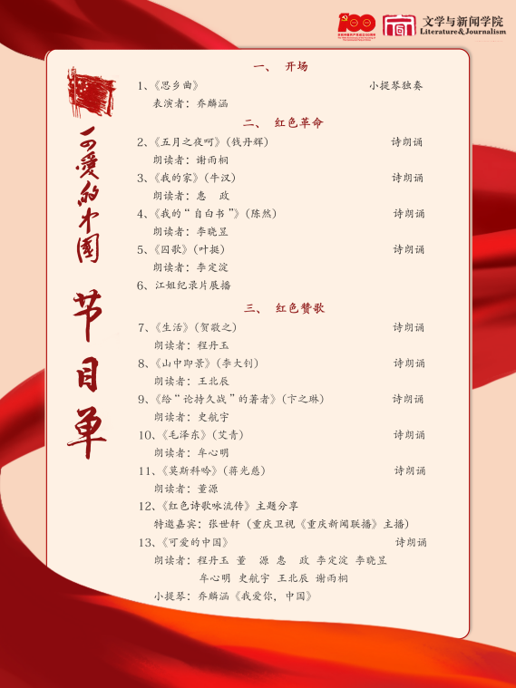 “可爱的中国 诗言志”节目单