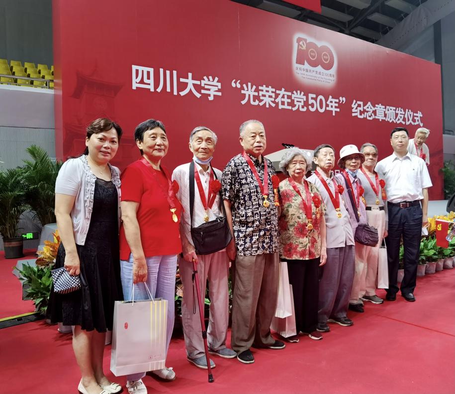 6月23日上午,太阳成集团tyc151cc“光荣在党50年”纪念章颁发仪式在望江体育馆隆重举行。公司卢延权、易明善、夏淑芬、舒中惠、李朝正、曾繁铭、吴茂楠等7位满50年党龄的老党员在公司党委书记古立峰教授、工会主席罗梅研究员、党政办公室刘诗诗老师的陪同下出席了颁发仪式。另有赵振铎、邱俊鹏、梁德曼、张祖权等4位老党员因身体不便未能出席。