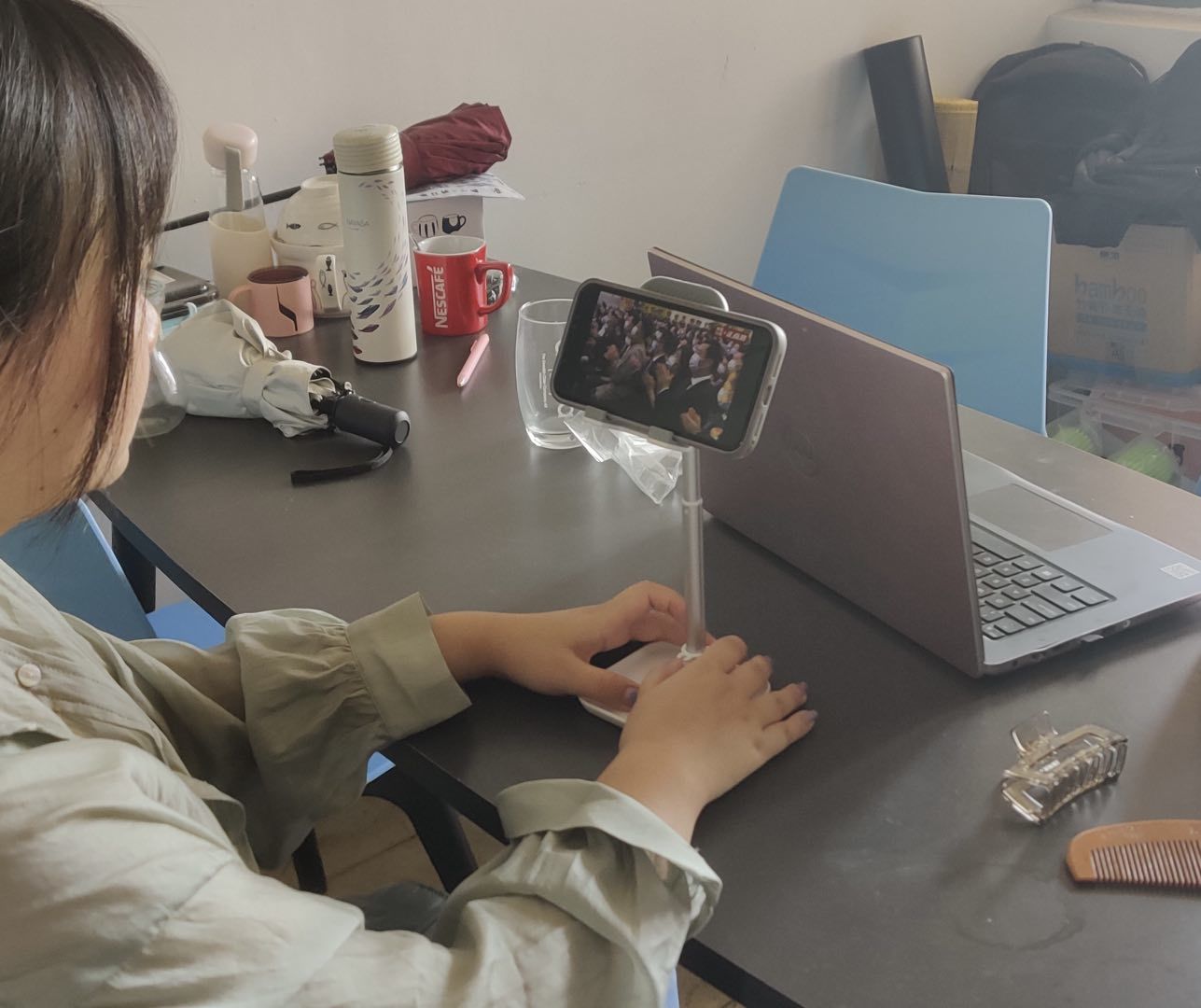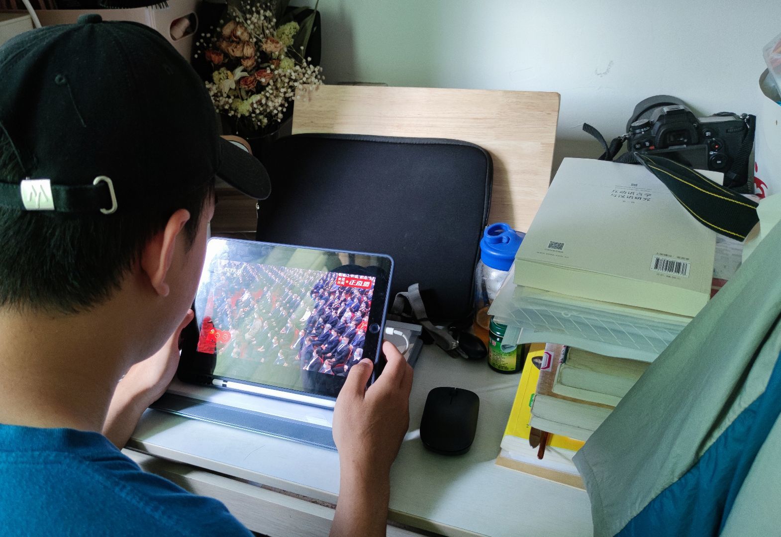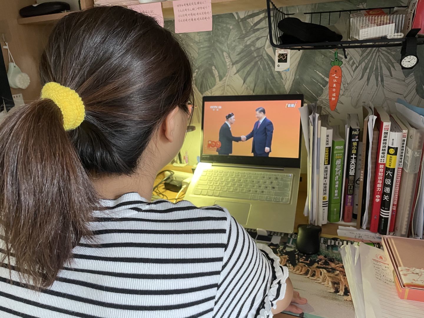观看“七一勋章”颁授仪式线上直播的同学们