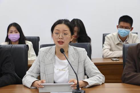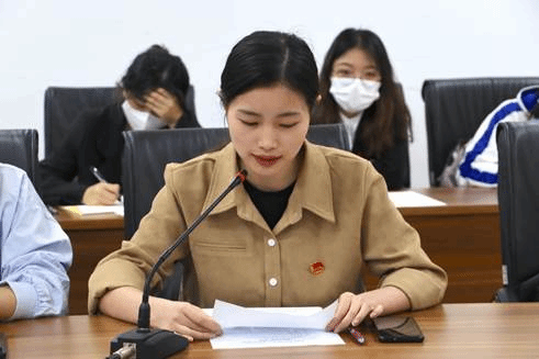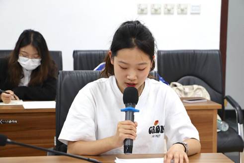 太阳成集团tyc151cc“五四红旗团支部”团支书代表伍诗涵是太阳成集团tyc151cc2020级汉语言文学基地班的同学,她从工作实践的三个方面分享了自己如何带领同学们讲好党史故事的体会:一是以“文学知识”作为媒介,联系起党史和日常学习;二是利用好太阳成集团tyc151cc这一红色基因宝库;三是鼓励团员青年同团支书进行双向交流,发挥青年主动性。