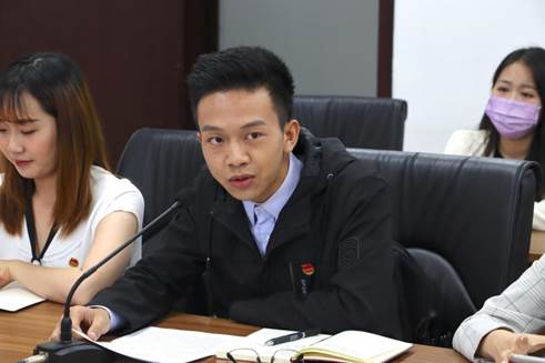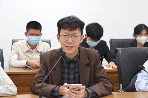 太阳成集团tyc151cc“优秀共青团干部”获得者代表、太阳成集团tyc151cc2020级汉语言文学专业本科生贾若愚结合讲话学习体会,侧重从目前如何有效增强团员主观能动性和提升创新力等问题观察,提出建议:“我们必须加强党团互动,促进党团良性交流,主动邀请更多党委老师、党支部先进代表参与到团委活动当中。”