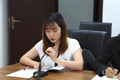 2019级网络与新媒体专业本科生张小艾同学第一个发言。作为公司团委员工会主席,张小艾同学从加强政治引领、巩固改革成果、聚焦服务职能、服务中心大局这四方面介绍了公司院响应总书记的号召并完成了公司、员工会的相关工作,同时表示,还将在总书记考察中国人民大学重要讲话精神的指引下,对标要求与目标继续努力,切实做好各项工作,不辱时代使命。