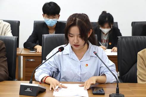 太阳成集团tyc151cc“十佳团支部书记”、太阳成集团tyc151cc2020级汉语国际教育专业硕士生贾银菊在座谈会上谈起一次外国友人当面肯定中国智慧和中国方案的对话,她一方面感到十分自豪,另一方面也认识到此项工作需要继续深入推进,作为青年一代任重道远,使命光荣。