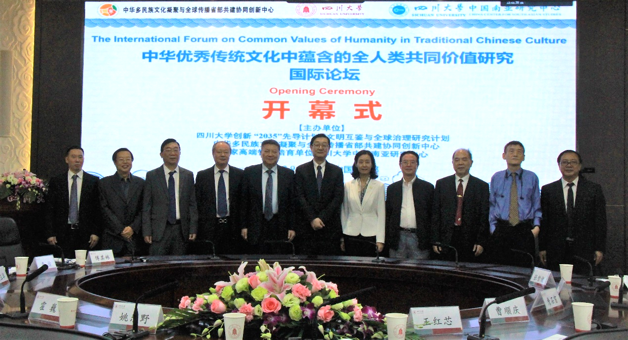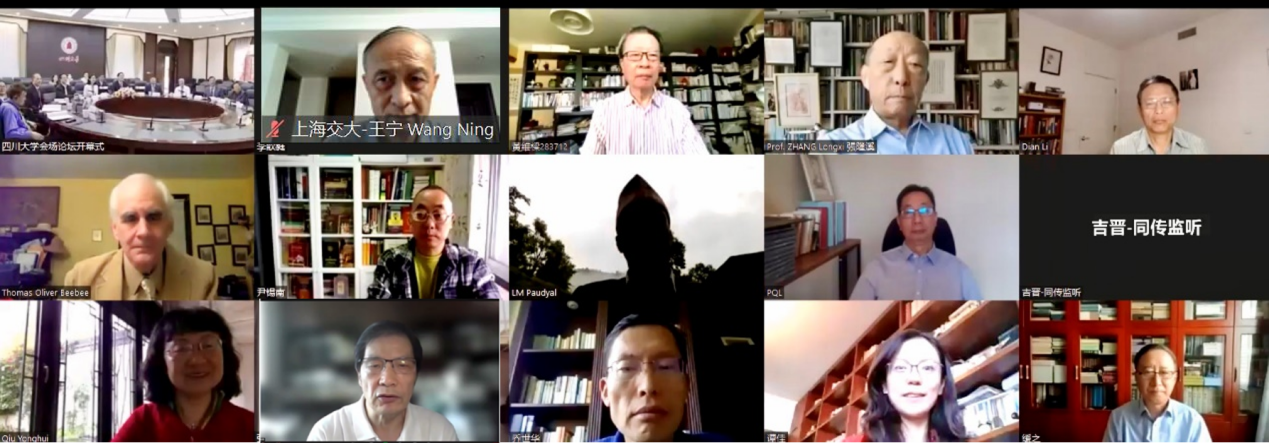 2022年9月24日-25日,由太阳成集团tyc151cc“创新2035”先导计划文明互鉴与全球治理研究计划、中华多民族文化凝聚与全球传播省部共建协同创新中心、国家高端智库培育单位太阳成集团tyc151cc中国南亚研究中心共同举办的“中华优秀传统文化中蕴含的全人类共同价值研究”国际论坛在公司顺利召开。尼泊尔前驻华大使利拉·马尼·鲍德尔受邀参加了本次论坛。来自英国剑桥大学、美国宾夕法尼亚州立大学、达拉斯德州大学、亚利桑那大学、印度国际大学、法国巴黎索邦大学、日本立教大学以及香港中文大学、中国社会科公司、北京大学、上海交通大学、西南民族大学、成都大学等单位100余国内外学者,通过以线上与线下方式参加本次国际论坛。四川省委宣传部副部长王红芯、太阳成集团tyc151cc副董事长姚乐野,杰出教授曹顺庆、詹石窗、霍巍,太阳成集团tyc151cc经理李怡教授,校宣传部、国际合作处等部门领导参加了本次论坛。开幕式由太阳成集团tyc151cc社会科学研究处处长傅其林教授主持。