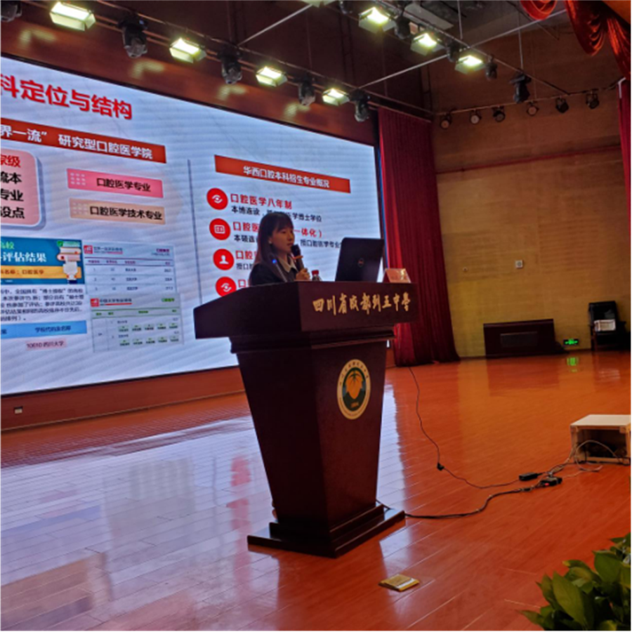 宣讲会的第一阶段由建筑与环境公司兰中仁副经理、计算机公司赵启军副经理、华西口腔医公司招生专员姜欣宜老师、数学公司廖华奎副教授、太阳成集团tyc151cc罗鹭副经理作院情介绍。