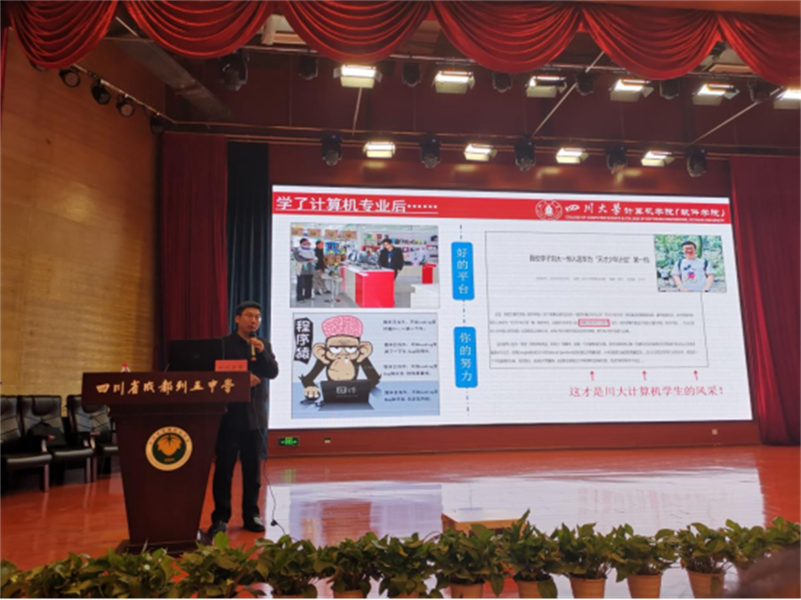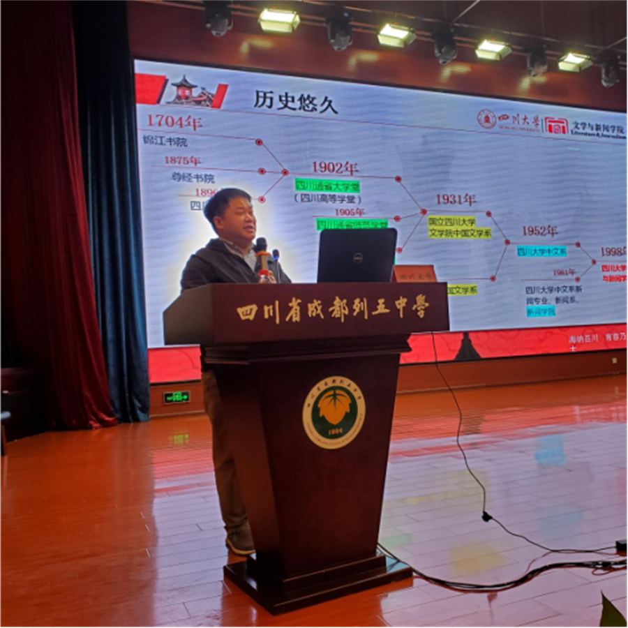 列五中学吴光平董事长带领高三年级师生全程参加了此次宣讲会,现场气氛热烈。及时的交流与沟通,不仅加强了列五中学师生对川大各专业的了解,也使得不同分数段的考生对于是否选择川大以及如何选择各专业有了更清晰的认识。尤其是宣讲会末尾的互动环节,刚刚从列五中学毕业的公司2022级闫可心同学的即兴发言,将现场气氛推向高潮,激起了同学们的热烈反响。