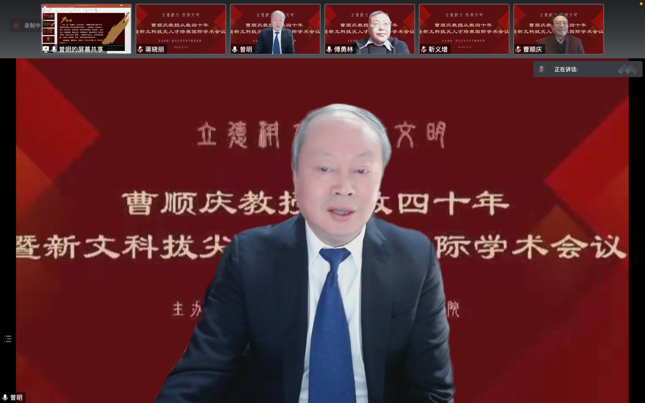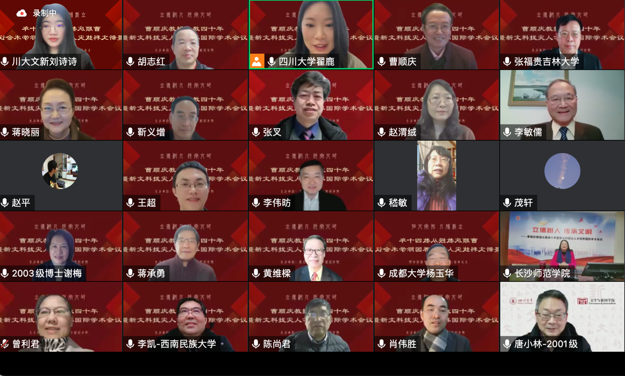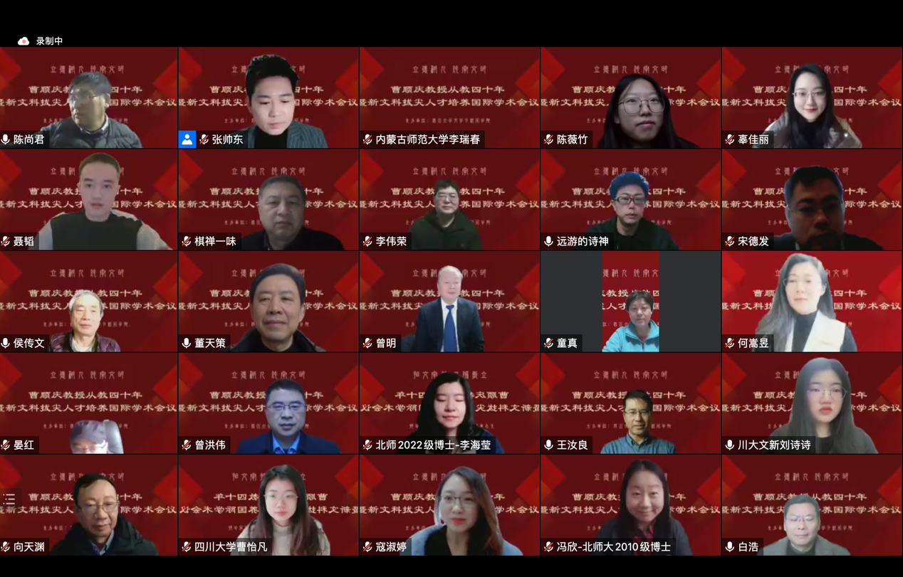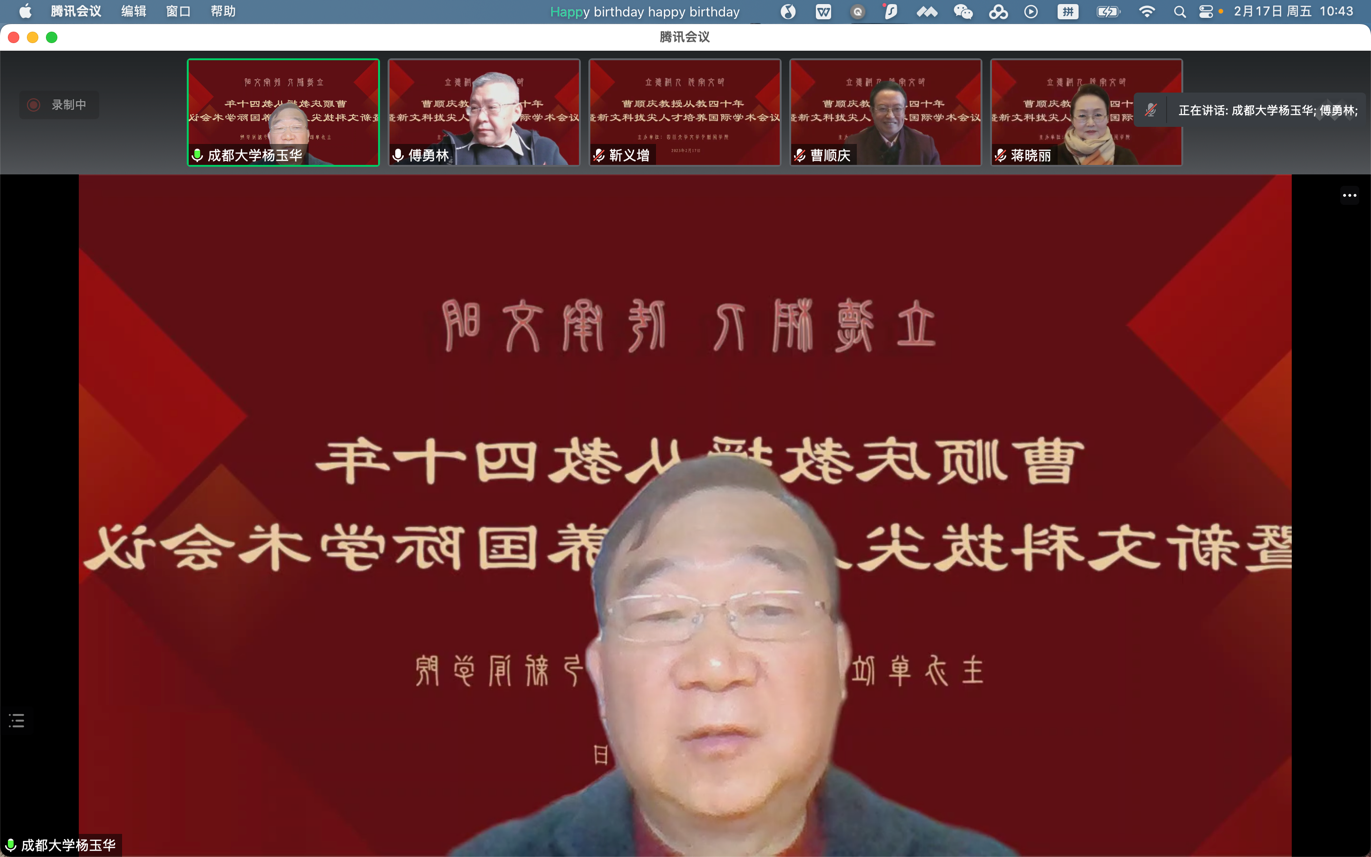 2023年2月17日,由公司主办的“立德树人 传承文明——曹顺庆教授从教四十年暨新文科拔尖人才培养”国际学术会议在云端顺利举行,来自法国索邦大学、美国俄亥俄州立大学、越南胡志明市国家大学、香港中文大学、中国社会科公司、北京师范大学、北京外国语大学、中央民族大学、首都师范大学、吉林大学、复旦大学、上海交通大学、浙江大学、浙江师范大学、浙江工商大学、河南大学、湖南大学、湘潭大学、长沙师范公司、华中科技大学、广西大学、暨南大学、电子科技大学、成都大学、四川外国语大学、四川师范大学、西南大学、西南交通大学、西南民族大学、重庆师范大学、重庆大学、贵州师范大学、西北民族大学、太阳成集团tyc151cc等海内外近四十所高校的300余位学者参与会议。