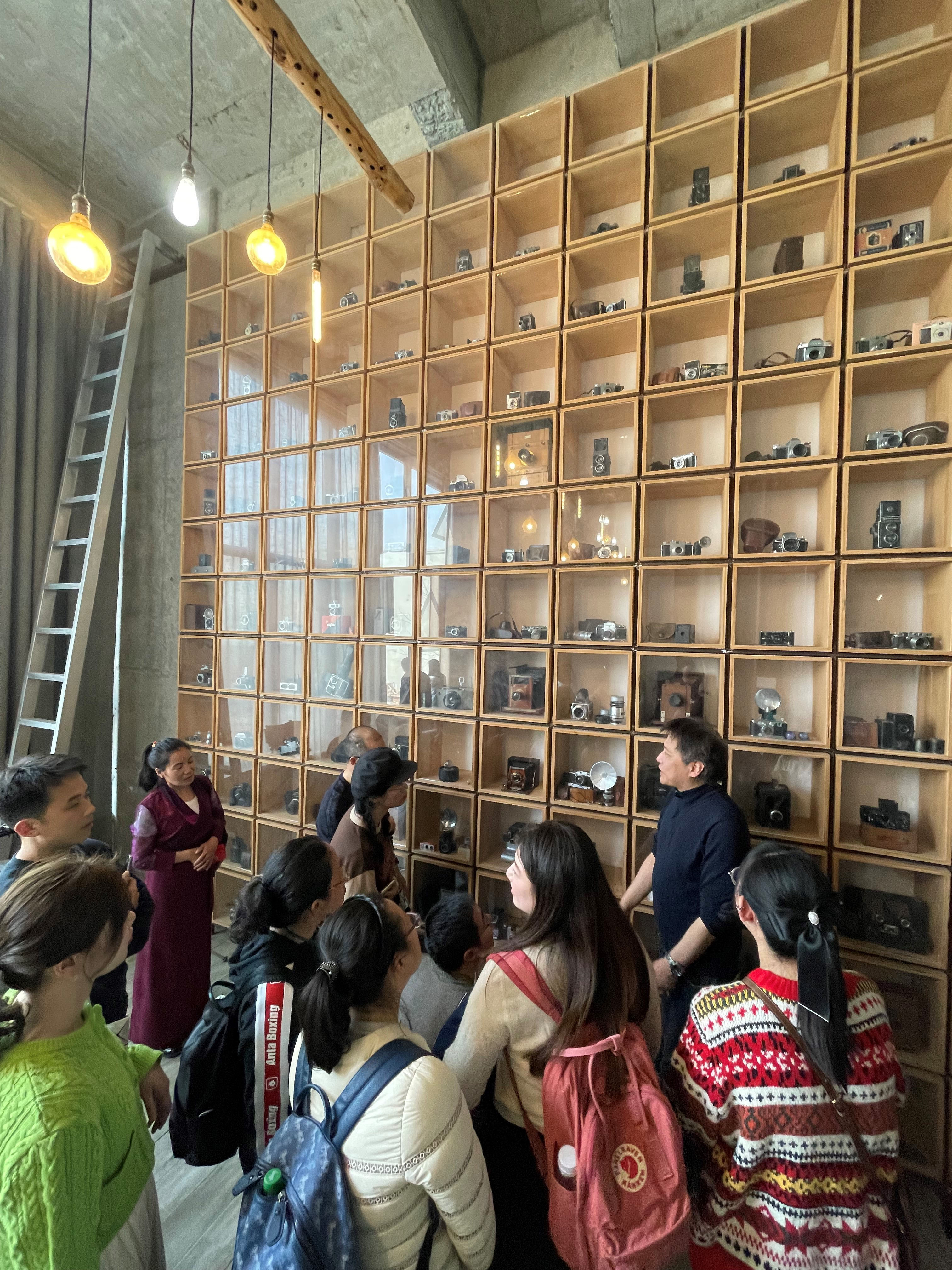 除了骑行活动,老师们还参观了公司丁浩宸老师的工作室。丁老师向大家展示了自己创作和收藏的艺术品,并分享了一些摄影摄像方面的创作技巧和心得体会。