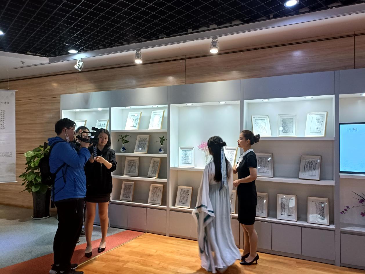 5月12日上午,“四川历代灾害文学文献的整理与传播”大创项目负责人、公司2020级汉语言文学(基地班)本科员工杨巧如作为嘉宾参与了封面新闻联合四川省防灾减灾教育馆开展的全网直播,为大家导览了相关展区与文献材料;公司四位员工代表也在直播现场进行了代表诗词的诵读表演。当天,各类直播渠道总计观看人次已超60万。