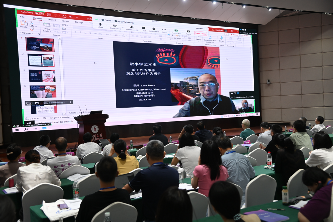 20日上午举办了大会学术报告的下半场,由苏州大学王军教授主持,南京师范大学余红兵教授评议。来自美国马凯特大学的Curtis Carter、南京大学艺术公司的赵奎英、浙江大学传媒与国际文化公司的李杰、瑞典林奈大学的Michael Ranta、意大利都灵大学的Massimo Leone和加拿大康考迪亚大学的Duan Lian采用“线上+线下”的方式分享了他们的学术报告。