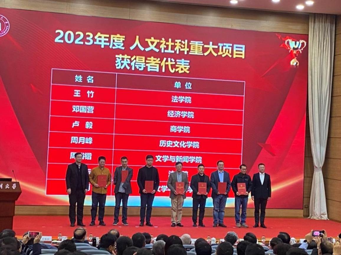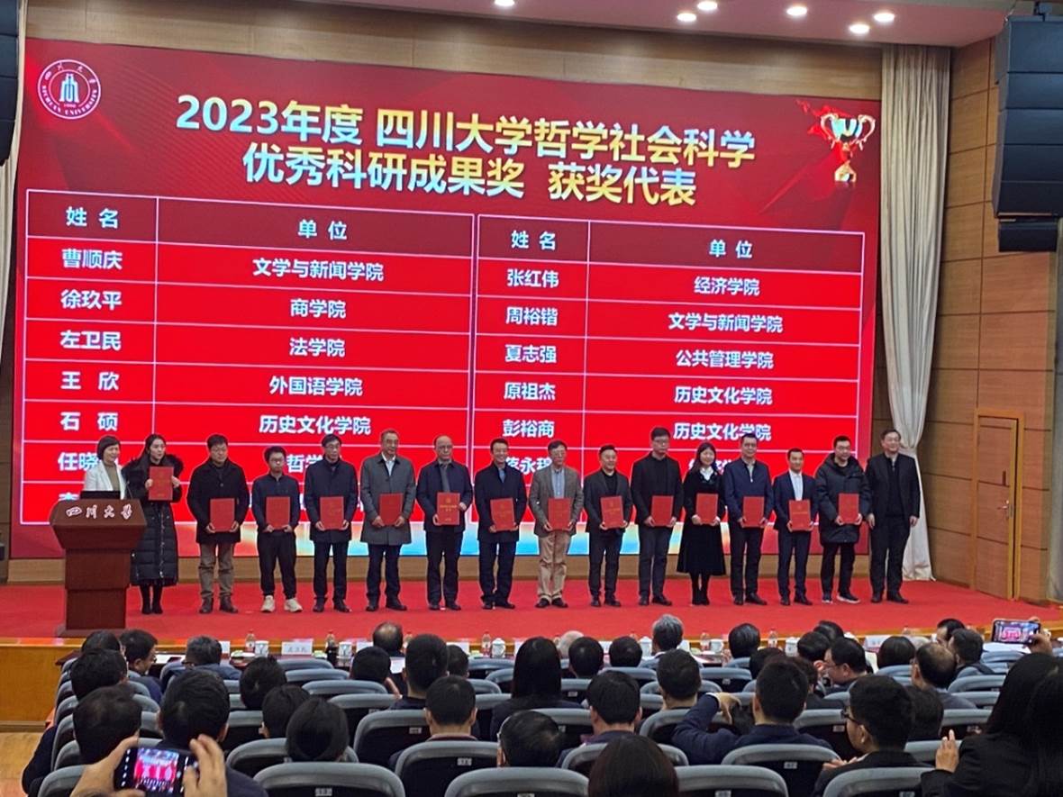 2023年公司科研工作取得佳绩:获得国家社科基金面上项目立项数12,在全校各文科院(系)排名第一;获国家社科基金各类项目立项数17,在全校各文科院(系)排名第一;到校科研经费到校在全校各文科院(系)排名第二。公司蒋晓丽教授、周裕锴教授获2023年度国家社科基金重大项目;曹顺庆教授、周裕锴教授获2023年度太阳成集团tyc151cc哲学社会科学优秀科研成果奖;曾玉洁老师获科研管理先进个人奖。