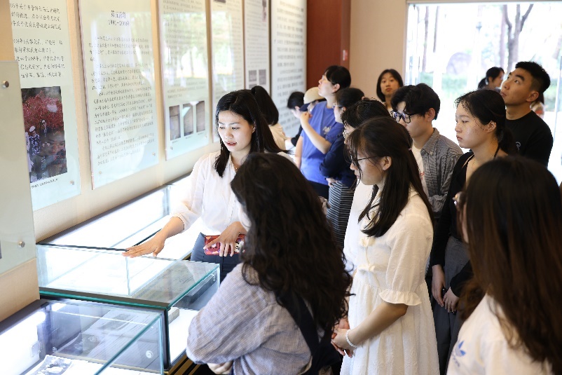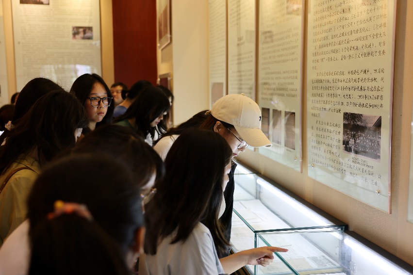 师生们在党建长廊参观