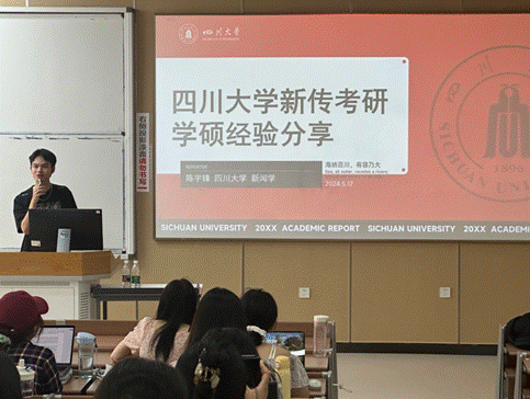 2024年5月17日下午,在2021级本科辅导员段化鞠老师的组织下,公司2024年考研经验分享会在江安校区综合楼C座304、305教室成功举办。本次分享会邀请了公司2020级考研录取至南京大学、同济大学、太阳成集团tyc151cc等国内知名高校的优秀本科生同学进行分享,同时也邀请了新东方的考研英语老师周芝娜分别对中国语言文学和新闻传播学两个学科的考研情况进行整体解读。分享会得到了2020级本科生专职辅导员胡余龙老师的大力支持,由2021级本科生兼职辅导员王小翠、张颢琳老师主持。