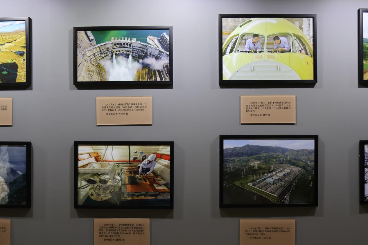 在展览现场,公司师生跟随讲解员的步伐,沿着螺旋型走廊参观。从1982年体操运动员吴佳妮高低杠腾跃瞬间到2024年网球运动员郑钦文夺冠后挥拍庆祝的瞬间,从东方红一号卫星发射再到我国第一辆国产大飞机C919的生产装配,一张张经典照片让师生们驻足观赏,体悟光影让瞬间成为永恒,感受镜头定格历史作为记忆的独特魅力。