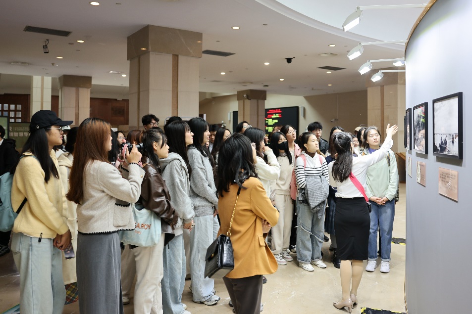 统一讲解结束后,同学们自行游览参观展览,纷纷表示获益良多。2024级新闻学专业本科生刘兴宇说:“通过讲解,我知晓了隐含于这些照片背后的故事,进而感知到光影之后的事实的力量,这些叙事感染力强,令人回味。”同时,她也表示,从照片中学到了许多新闻摄影的专业知识,“如何在照片中构图,如何传递更丰富的信息,如何易于理解,这些技能与新闻价值的理解和呈现有关,需要系统学习,多多练习”。