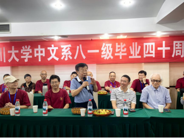 员工代表倪邦文汇报了同学们毕业后的发展与现状。四十年来,员工们在各自岗位上兢兢业业,现多数人已退休,但都尽己所能为国家、为社会做出贡献,没有辜负时代的期望和母校的培养。他动情地说,川大是大家共同的精神家园,即使毕业多年,同学之间依然保持着深厚的情谊,同喜同乐、同担风雨。他祝愿每一位员工身体健康,也衷心希望母校与母院再创辉煌,“未来的岁月里,我们仍愿尽己所能为母校增光添彩。愿五十年、六十年、七十年时,我们依然相聚在一起!”
