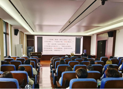 罗鹭经理以《从‘诗礼传家’到‘书生报国’——中国读书人的家国情怀》为题,围绕“诗礼文化”与“书生报国”二词进行了精彩授课。课中,他详细阐述了“诗言志、礼立身”的内涵与发展,讲述了不同时期文人的爱国情怀与报国方式;通过郑振铎在抗战时抢救典籍,为国家保留大量宝贵文化财富的报国事迹,向同学们强调了厚植家国情怀、传承国家民族文化的重要性。