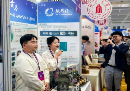 “挑战杯”国赛巡展中团队成员进行项目讲解