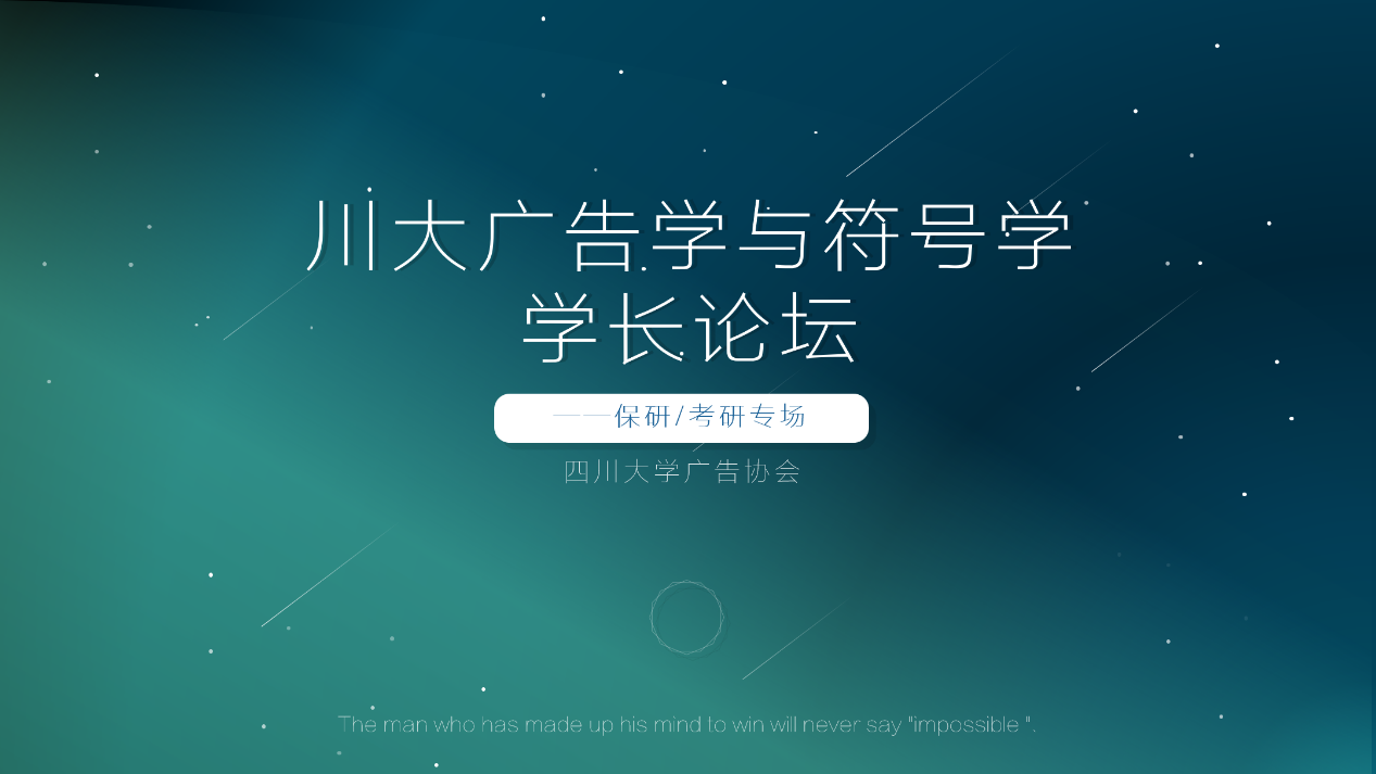 6月9日19:30-21:00,“川大广告学与符号学学长论坛——保研/考研专场”在腾讯会议平台举行。公司党委副书记张莹老师,广告与符号学教研室主任饶广祥副教授、彭虹副教授和八位顺利升学的同学出席论坛,共同探讨广告学的深造和就业趋势,并解答同学们对广告学考研和保研的疑惑,公司80余名学子参加了此次论坛。