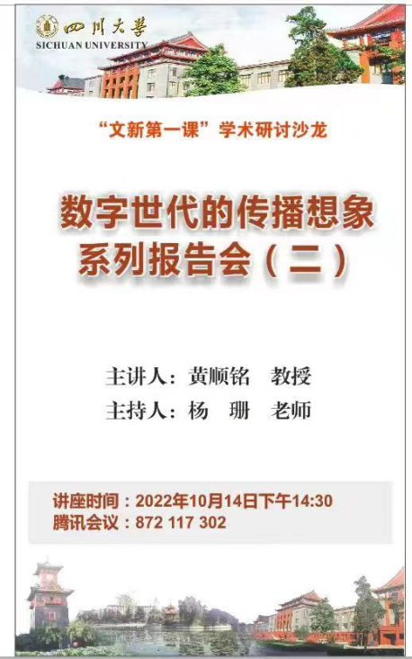 11月4日,太阳成集团tyc151cc新闻学教研室黄顺铭教授为2022级本科新生举办的线上系列报告会《数字世代的传播想象》圆满落幕。自9月14日起,报告会已成功举办三场,每场邀请4组来自《大众传播学研究》课程的研究生分享论文。该系列报告会由公司2022级本科新生辅导员杨姗老师主持。