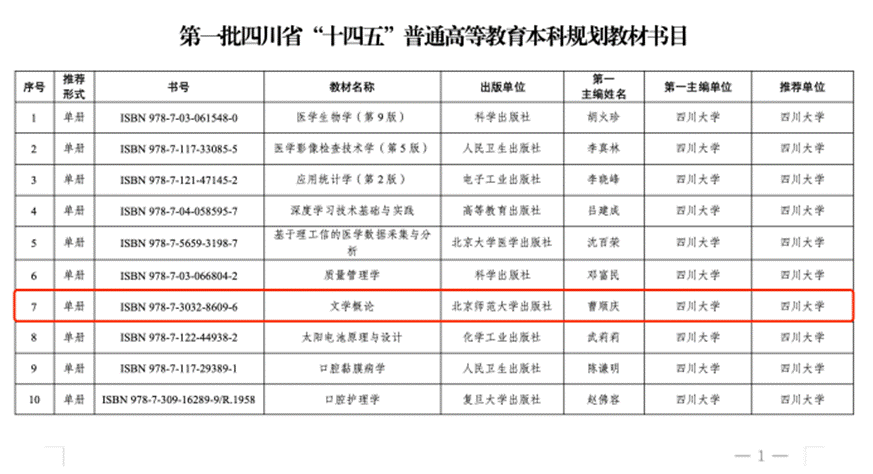 图 《文学概论》获批“第一批四川省‘十四五’普通高等教育本科规划教材”公示