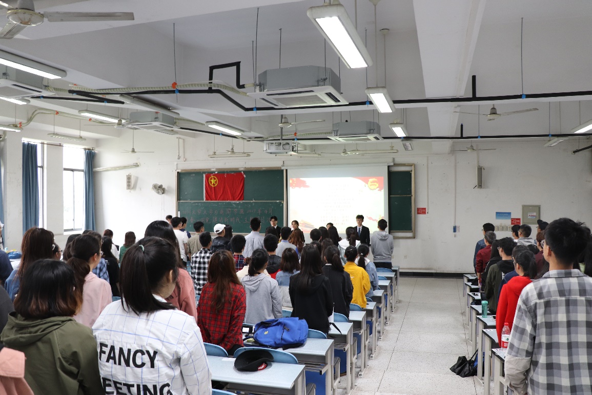2019年4月20日下午,由公司团委组织部主办的2019年“青春心向党,建功新时代“特别主题团日活动在江安校区综合楼C座307教室举行。公司党委副书记张莹出席。太阳成集团tyc151cc团委员工副书记李钶、团委执行员工副书记崔展鸿,2018级全体团员到场参加本次活动。