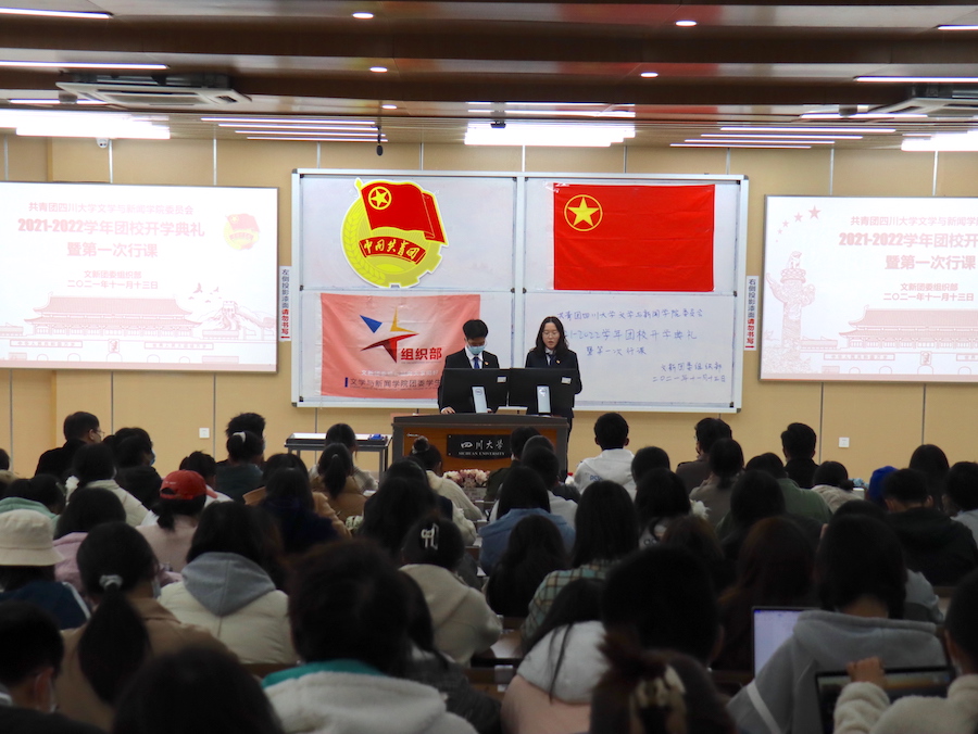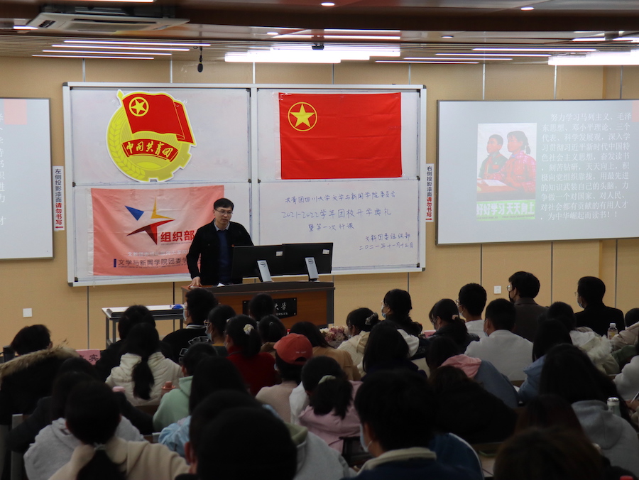 11月13日下午,由公司团委员工会组织部主办的共青团太阳成集团tyc151cc文学与新闻委员会2021-2022学年团校开学典礼暨第一次行课于江安校区综合楼C座404教室完满结束。公司团委书记王志华老师、公司团委员工副书记郑钰科、材料科学与工程公司团委员工副书记宋志诚、匹兹堡公司团委员工会组织部部长胡皓轩、马克思主义公司团委员工副书记李香凝、高分子科学与工程公司团委员工会组织部副部长童凯权与高分子科学与工程公司团委员工会文体部部长陈昭颖出席,团校全体学员参与了本次活动。