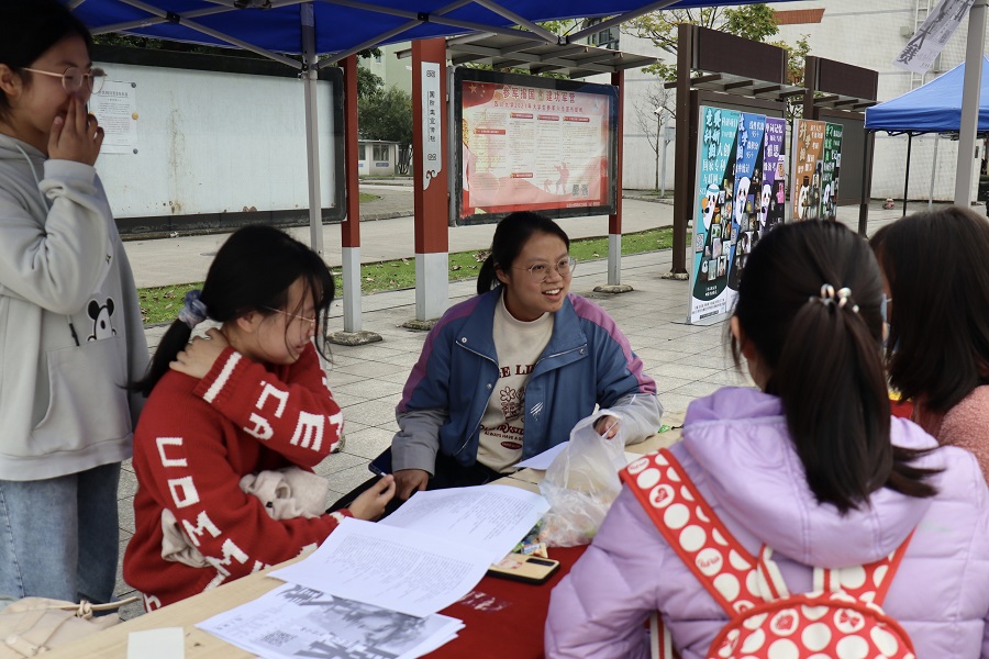 青春广场的宣传摊位前,不少同学前来咨询本次剧本大赛的相关细则。干事们拿着宣传单,在广场上积极宣传,认真解答。摊位上,干事们为同学们详细介绍了比赛的相关流程、具体内容和评判规则。同时,对于有兴趣的同学,各位干事也热情引导他们报名参加。