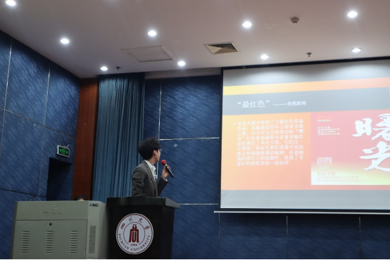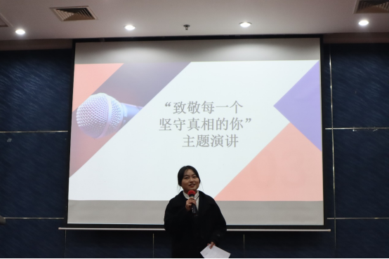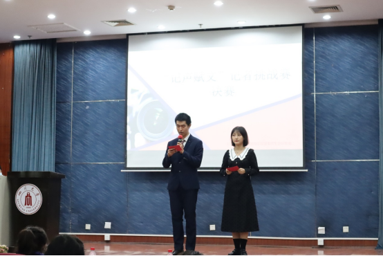 11月21日晚“镜记峥嵘,笔写风华”记者节系列活动之“记声赋文”记者挑战赛决赛于江安校区第二基础实验楼报告厅顺利举行。本次活动面向公司全体本科生,由公司团委员工会宣传部承办。2020级广告与媒介经济学硕士生杨雨桐、2020级新闻学专业硕士生魏梓慧、我院团委员工会副主席康雨晨、团委员工会执行主席杨晨、社团联合会会长李佳芮、素质拓展部部长韩佳玉同学作为评委参加。