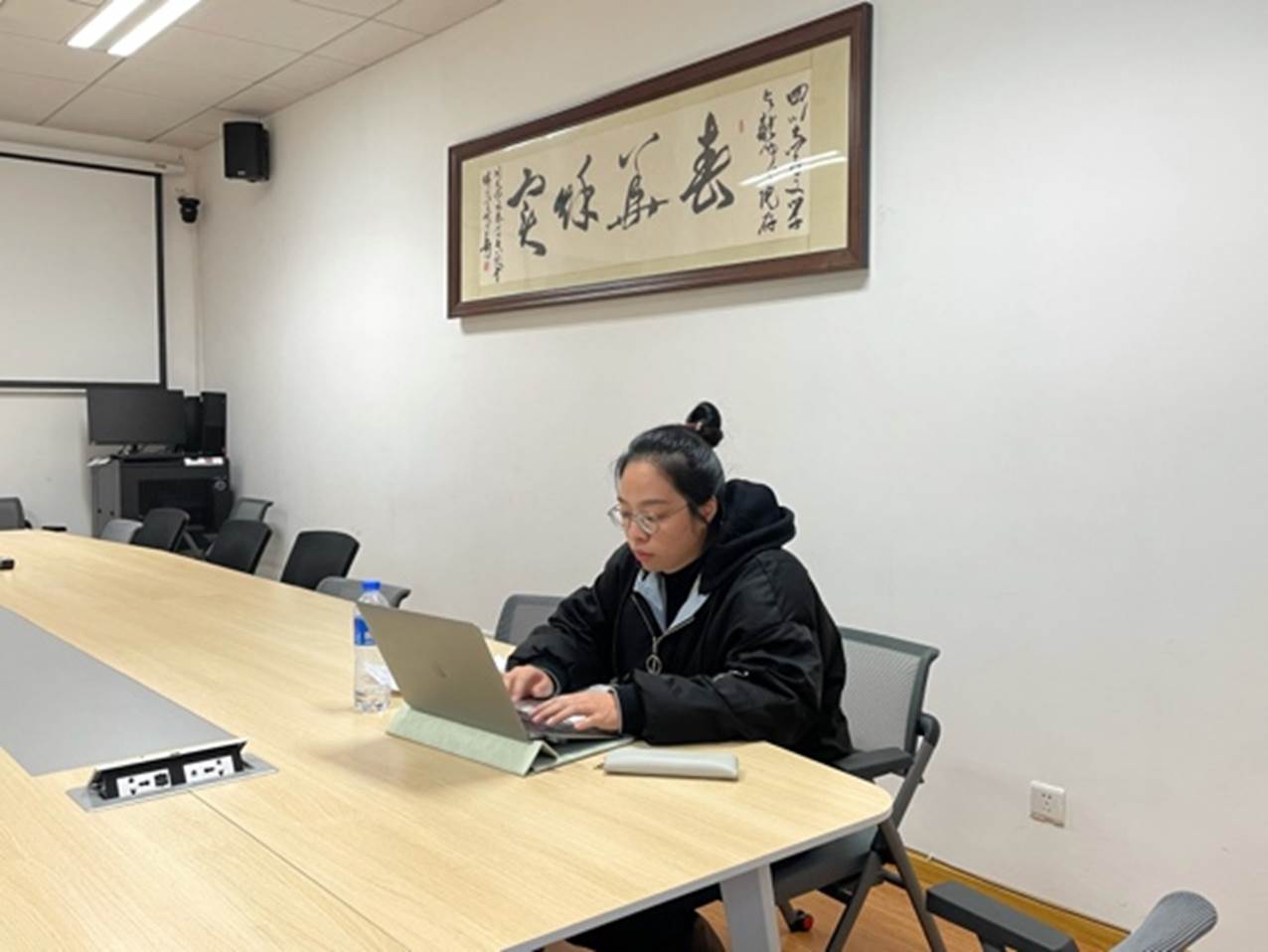 据活动负责人介绍,315会议室实行24/7全天候开放制,有使用需要的同学可以提前联系所在班团对应党支部的书记,由党支部书记在会议室预约系统中进行登记后,即可在预约时间段独立使用会议室。会议室配有桌椅、空调、电脑、投影仪、饮水机等较为完善的硬件设施,环境相对安静舒适,受到大家的青睐。