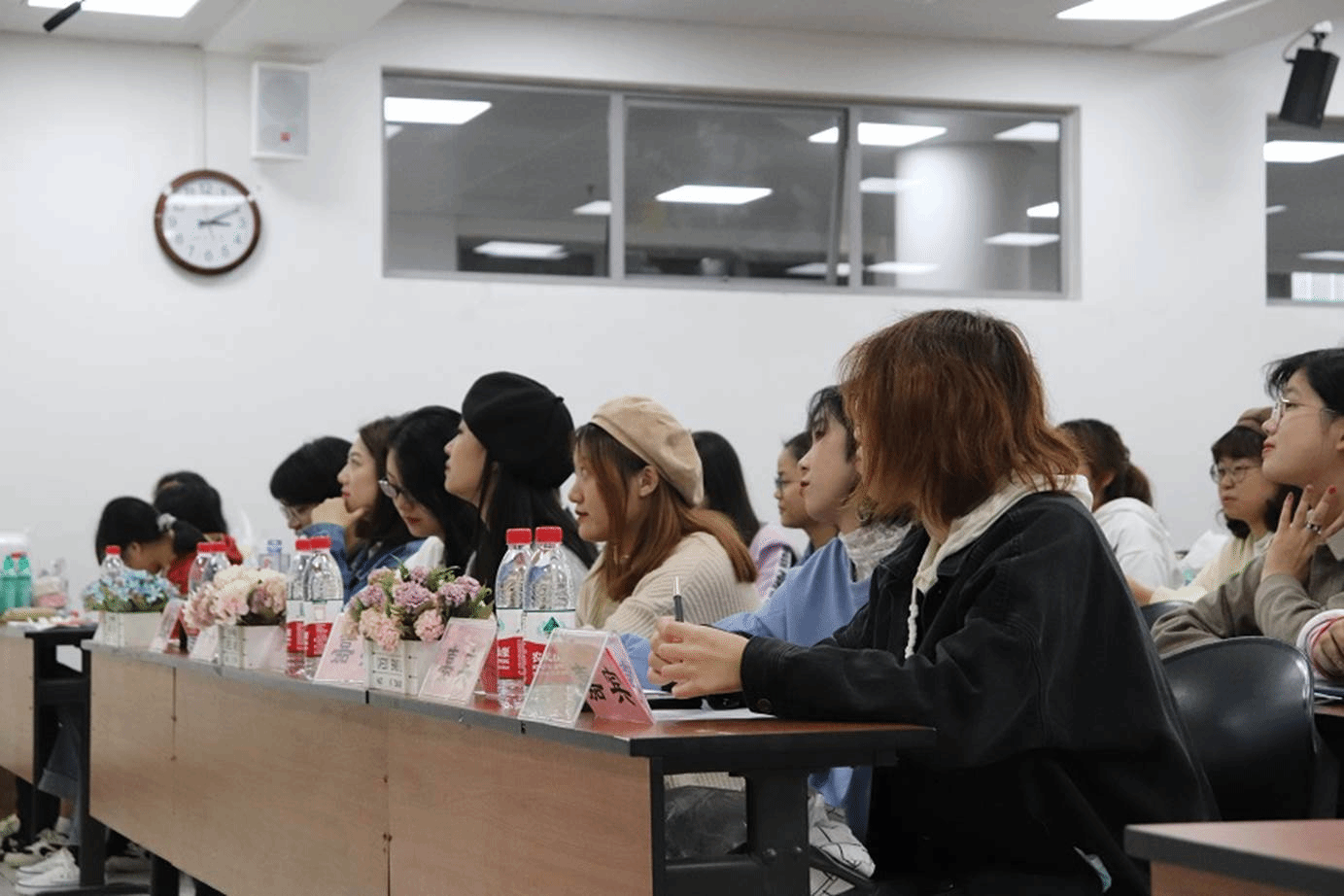活动伊始,主持人介绍活动流程及到场嘉宾。随后各个寝室的同学依序上台展示寝室布置成果并进行才艺展示。同学们通过PPT展示出风格多样、别出心裁的寝室内部装饰,在才艺展示环节以不同的形式,向评委们展现了寝室成员间的默契及凝聚力。