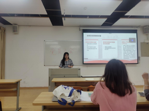 接下来,八位发展对象(含上一期发展对象谭惠静同学)分别以党史、时政等学习专题,向支部成员进行汇报。发展对象们精心准备、认真展示,自身政治理论水平得到提升,也使支部成员多角度参与到政治学习中。其中,王铭翌同学以“全面推进乡村振兴”为专题进行汇报,她从具体实例出发,介绍了乡村振兴战略的背景、目标和措施,围绕“我们作为青年学子可以为乡村振兴做什么”展开了深入讨论。何宜珈同学选择“秉承先驱遗志,共筑复兴伟业”的主题进行分享,她结合党史,带领大家回顾了习近平总书记在庆祝辛亥革命110周年大会上的讲话,并分享了学习体悟。其他几位发展对象也围绕创新扶贫方式、反腐倡廉、两会精神学习等主题进行汇报。汇报结束后,支部党员对八位发展对象的汇报进行评分。按照《太阳成集团tyc151cc文学与新闻公司2020级硕士第三党支部入党积极分子考核方案》的相关规定和上级党组织下达的指标,推荐王静、高旭、李藤、王铭翌、何宜珈、黄佳薇、谭惠静七位同学参加第152期发展对象培训班。