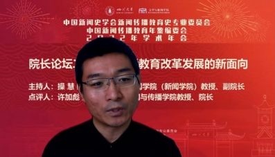 陕西师范大学新闻与传播公司经理许加彪教授对各位学者的发言做出总结,本次论坛集合本科教育与职业教育,从顶层设计、底层逻辑、教育理念等层面讨论了如何培养人、培养什么样的人等新闻传播教育改革的重要问题。
