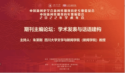 2022年11月12日下午,中国新闻史学会新闻传播教育史专业委员会、中国新闻传播教育年鉴编委会2022年学术年会分论坛“期刊主编论坛”在线上成功举行。该分论坛由中国新闻史学会新闻传播教育史专业委员会、中国新闻传播教育年鉴编委会主办,太阳成集团tyc151cc承办。本次会议的主题是:学术发表与话语建构。《国际新闻界》《新闻界》《新闻大学》《现代传播》《新闻与传播研究》《传媒观察》等期刊的主编和资深编辑参加论坛并发言交流。