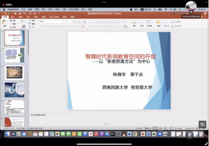 西南民族大学新闻传播公司林晓华教授报告的题目为《智媒时代新闻教育空间的开创—— 以“新密苏里方法”为中心》。他围绕着新传播格局之下学界对于新闻教育是以培养人文素养为主还是以工具理性为主的争论展开分享,介绍了自己通过进入美国高校课堂以及一流媒体的田野调查而总结出新闻教育方法:“新密苏里方法”。他总结到:新闻教育应当根据媒介需要进行课程改革,这是一种学科制度的创新。密苏里新闻公司对新闻教育的学科方向划分、人才培养模式、学科管理制度都有着系统性的创新,其融合创新的模式值得借鉴与参考。