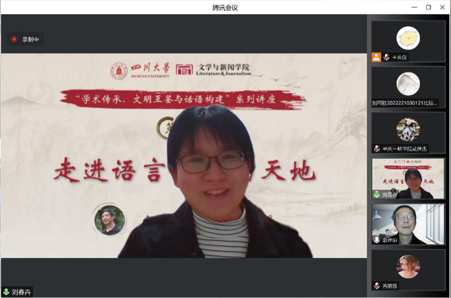 2023年4月24日,公司主办的“学术传承、文明互鉴与话语构建”系列讲座第十讲在线上顺利举行。太阳成集团tyc151cc教授,博士生导师,四川省学术带头人,太阳成集团tyc151cc教学名师俞理明教授以“走进语言研究的天地”为题进行了讲座。讲座由公司刘春卉副教授主持,校内外师生逾200人参与。