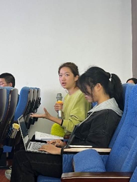 领读人2023级语言学及应用语言学专业硕士研究生高嘉悦详细梳理了本期共读论文的论述结构和主要观点,并分享了自己的阅读收获。文章提出预期的认知模型,其中有四个部分:条件(先有的知识状态)O、预期P(M|O)、当前信息P(M)和预期性(预期与当前信息的比较值)。从认识主体可分为自预期、他预期、常理预期、前文预期和(行为)主体预期。预期就是情态表达,可分为强预期(能力预期、道义预期和认识预期)和弱预期(意愿预期)。从条件的性质分为类指预期和个体预期。文章重点讨论了类指预期和个体预期的语义差异以及判别格式,考察了汉语副词“竟然”和“偏偏”。在场每位同学依次发表了自己的看法,提出疑问并与其他老师、同学讨论交流,现场氛围热烈,效果良好。