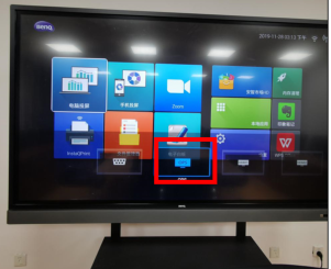 2.首页用遥控器按下最上面的“信源”键,选择OPS,进入一体机自带的电脑系统。