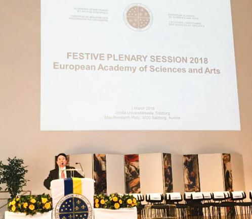 The Plenary Session 2018 and the Awarding Ceremony for new academicians of European Academy of Science and Arts were held in Salzburg, Austria on the morning of March 3 (European time). During the ceremony, Prof. Cao Shunqing, Dean (academic affairs) of Sichuan University's College of Literature and Journalism, Outstanding Professor in liberal arts of Sichuan University, and Distinguished Professor under the Chang Jiang Scholars Program, was awarded the title of "Academician of European Academy of Sciences and Arts" for his great contributions to the field of comparative literature.